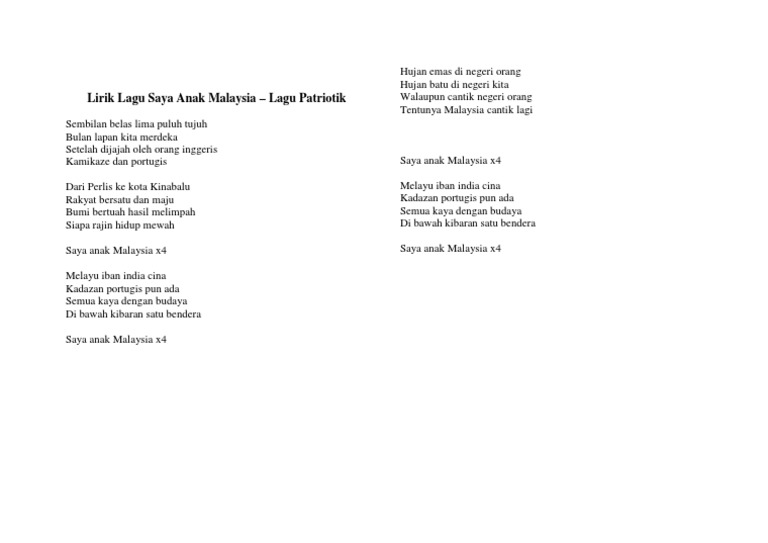 Lirik Lagu Saya Anak Malaysia Lirik Lagu Patriotik To Download Saya Anak Malaysia Crt Yezideeplyhateds
